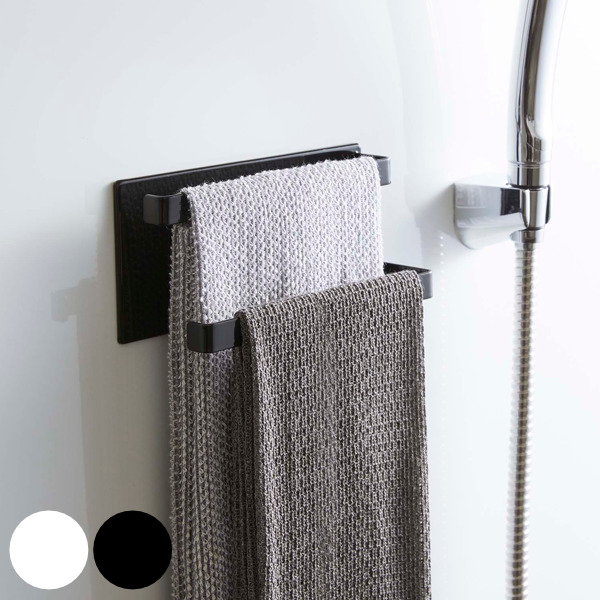 磁石の付く壁面の好きな場所に簡単に取り付けできる2段タイプのタオルハンガーです。ボディタオルを上下2段に分けて2枚収納できます。シンプルですっきりとしたデザインは、まるで備え付けのようにバスルームに馴染みます。