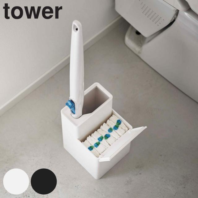 山崎実業 tower 替えブラシ収納付き流せるトイレブラシスタンド タワー ( 4903208057226 トイレ ブラシ 収納 使い捨て トイレ掃除 掃除 トイレブラシ スタンド TOWER 付け替えブラシ ブラック ホワイト モノトーン シンプル )