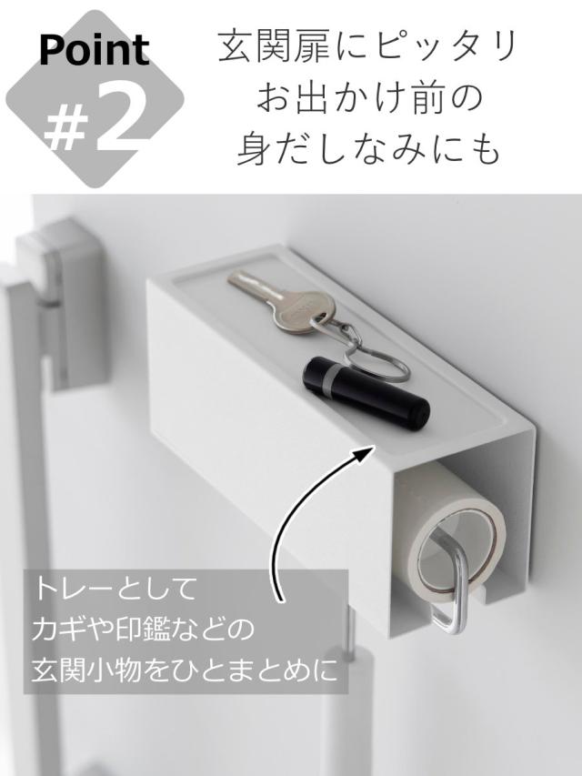 トレーには印鑑や鍵などの小物を置くことができるので、玄関のドアにピッタリです。お出かけ前後にほこりや花粉をサッとお手入れできます。