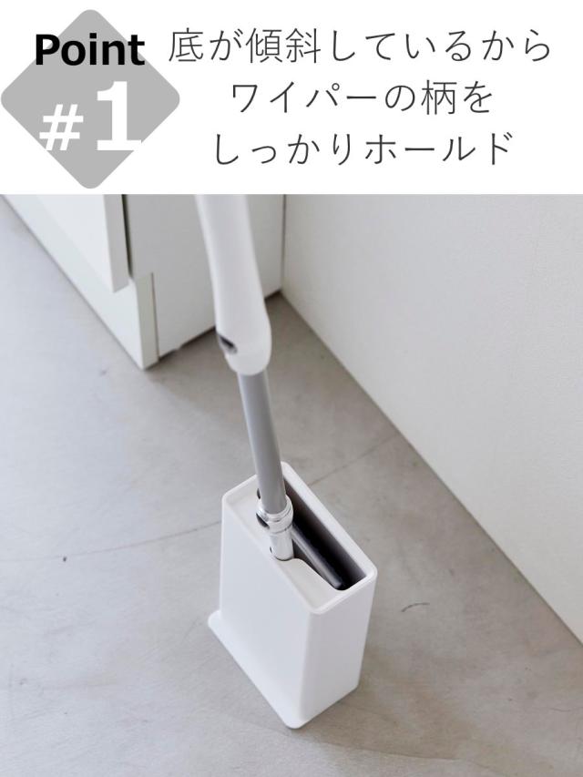 本体の底が傾斜になっているので、ワイパーを入れても倒れにくく、安定して収納できます。さらに、ワイパーが蓋のくぼみにフィットして左右に倒れるのを防ぎます。