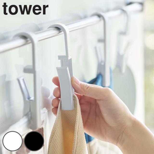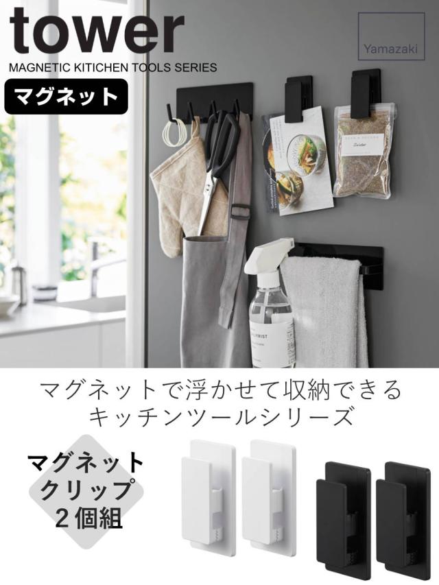 山崎実業 tower マグネットクリップ タワー2個組 ( 4903208036696 タワーシリーズ マグネット クリップ フック ふきん掛け メモ タオル 浮かせる収納 壁面 冷蔵庫 キッチンパネル 洗面台 洗面所 サニタリー キッチン 台所 ホワイト )