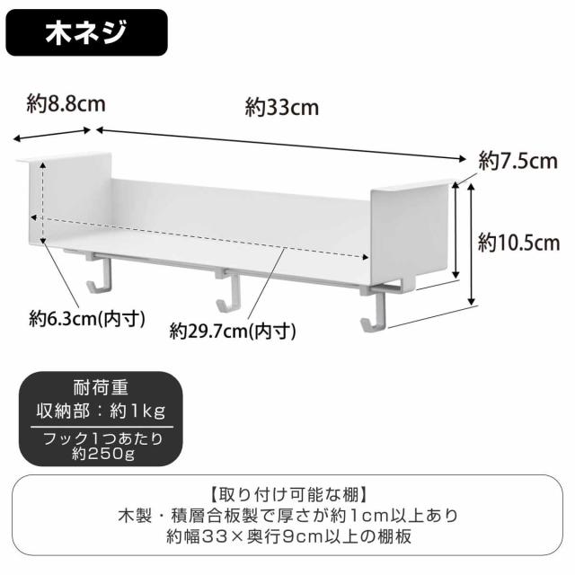 | 耐荷重 | 収納部:約1kg フック1つあたり:約250g |