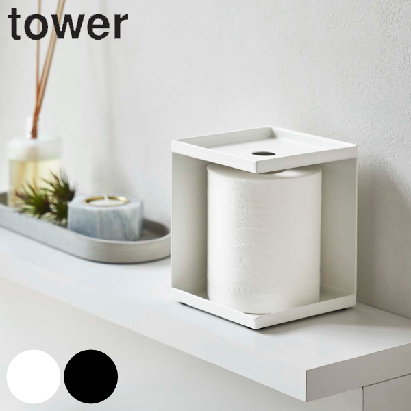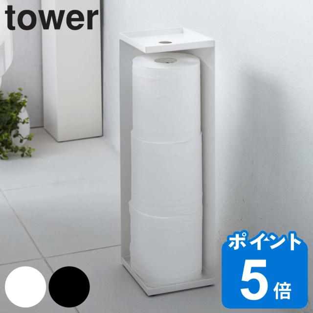 tower トレイ付きトイレットペーパースタンド タワー ( 山崎実業 タワーシリーズ トイレ収納 スリム トイレットペーパー ストッカー 収納棚 収納ラック トイレットペーパーホルダー )