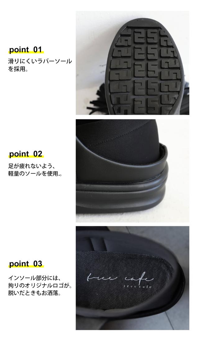 ・かかと部分にはストレッチ素材を採用し、かかとを踏んでも履ける2way仕様に!