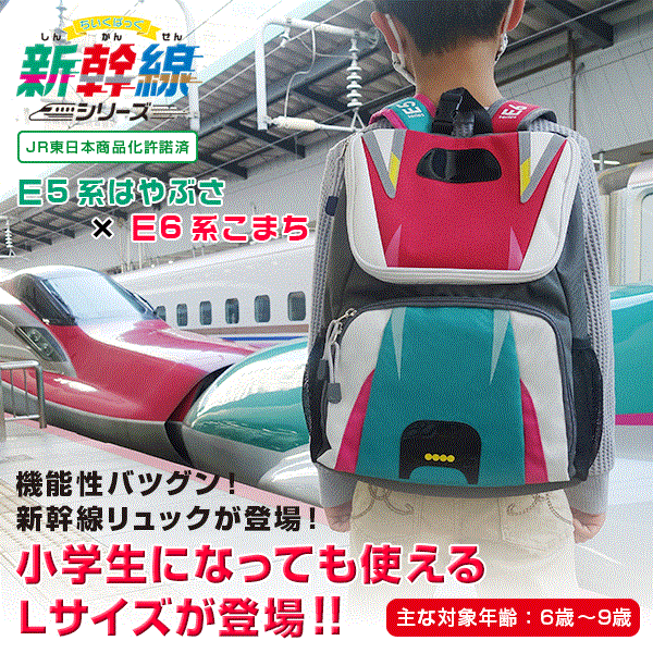 新幹線 リュック【Lサイズ】連結 はやぶさ×こまち ちいくばっぐ 新幹線シリーズ 【JR東日本商品化許諾済】 | グッズ バッグ 子供 バック 電車 リュックサック 男の子 キッズ 子供用 キッズリュックサック 6歳 7歳 8歳 9歳 子ども 撥水 小学生 入学 ギフト プレゼント
