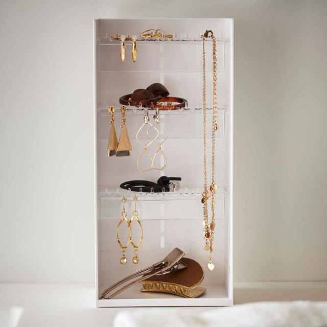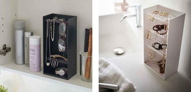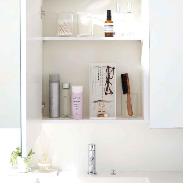 洗面周りで使えるアクセサリー収納ケースです。アクセサリー等の小物をまとめて収納できます。洗面周りで必要な時にすぐ使えるので便利です。ごちゃごちゃしがちな洗面周りもスッキリします。