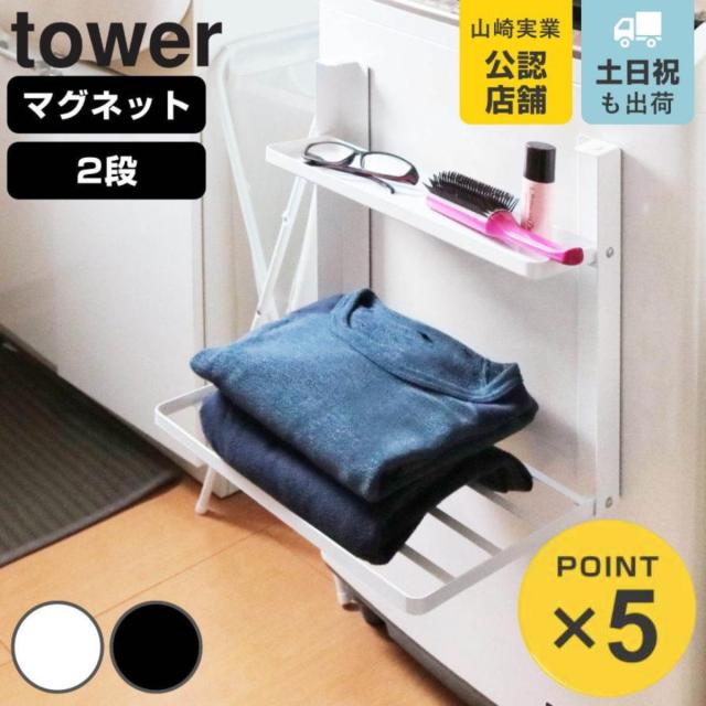 tower 山崎実業 洗濯機横マグネット折り畳み棚 タワー 2段 ( 4903208017176 タワーシリーズ 洗濯機収納 マグネット ランドリー 磁石 tower 山崎実業 マグネット 山崎実業 tower)