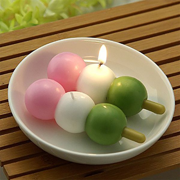 「赤と白は縁起がよく緑は邪気を払う」と昔から言われのある三色団子。火を灯すと甘い香りがふんわり広がります。※ご使用の際は、フィルムを剥がし、笹を取り除き、横に寝かして使用してください。