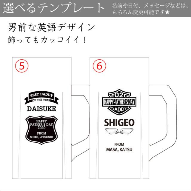 この商品は、デザインテンプレートで簡単にオリジナルビールジョッキを作ることができます。選べるテンプレートデザインは8種類! ビールジョッキにお相手の名前を彫刻することで、特別感のあるプレゼントとして人気です!
