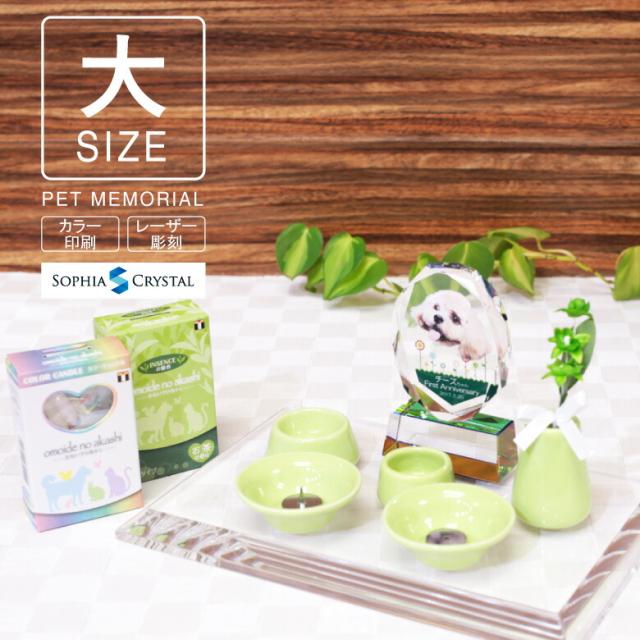 ペット 位牌 仏具セット KP-2-ASET(大)クリスタル 写真 カラー 両面印刷 誕生石 レーザー 彫刻 フォト 遺影 供養 ペットメモリアル 陶器 手元供養 仏壇 葬儀 49日 虹の橋 思い出 おもいでのあかし パステル かわいい 犬 猫 うさぎ インコ 小動物.