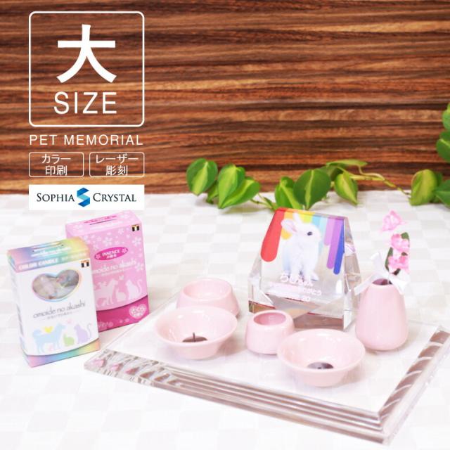 ペット 位牌 仏具セット KP-8-ASET(大)クリスタル 写真 カラー 両面印刷 誕生石 レーザー 彫刻 フォト 遺影 供養 ペットメモリアル 陶器 手元供養 仏壇 葬儀 49日 虹の橋 思い出 おもいでのあかし パステル かわいい 犬 猫 うさぎ インコ 小動物.