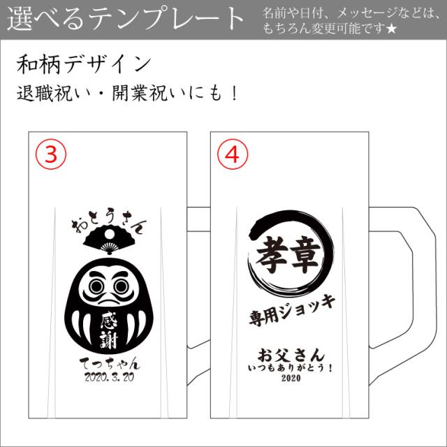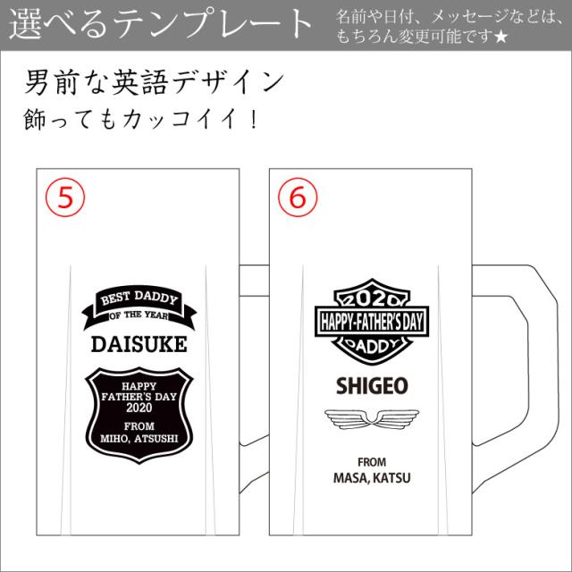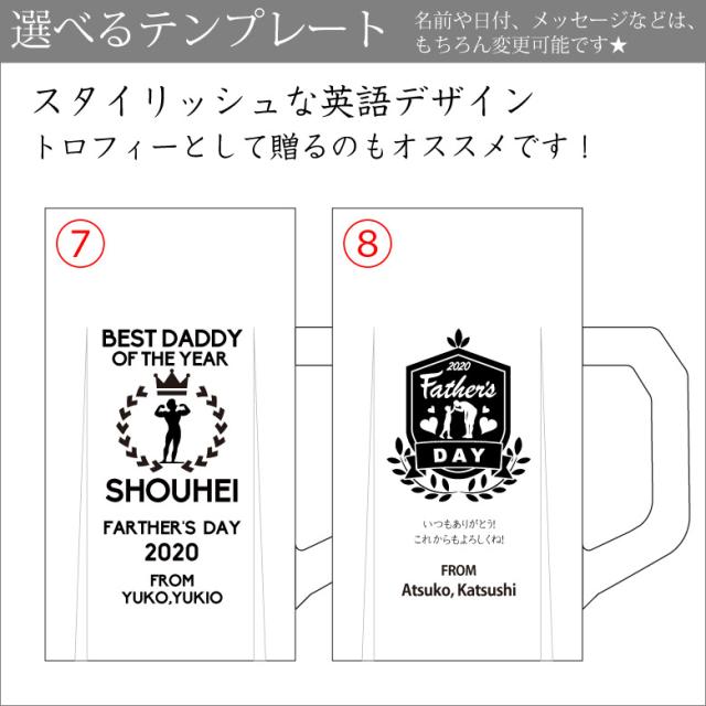 この商品は、デザインテンプレートで簡単にオリジナルビールジョッキを作ることができます。選べるテンプレートデザインは8種類! ビールジョッキにお相手の名前を彫刻することで、特別感のあるプレゼントとして人気です!