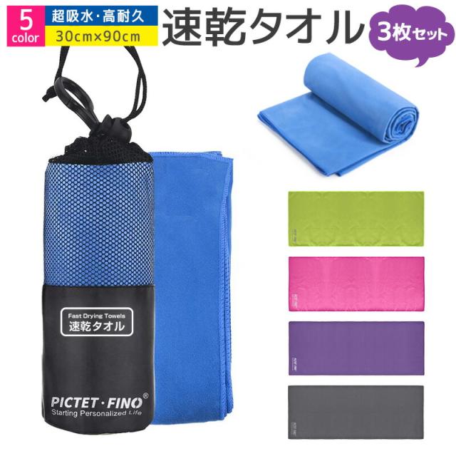 速乾タオル 3枚セット スポーツタオル 旅行タオル バスタオル 水泳 超吸水 柔らかい 色褪せない スイミングタオル 水泳タオル