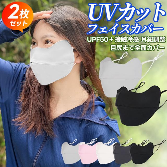 スポーツマスク 2枚セット フェイスマスク フェイスカバー フェイスガード ひんやり 紫外線対策 接触冷感 冷感マスク 洗える UPF50+