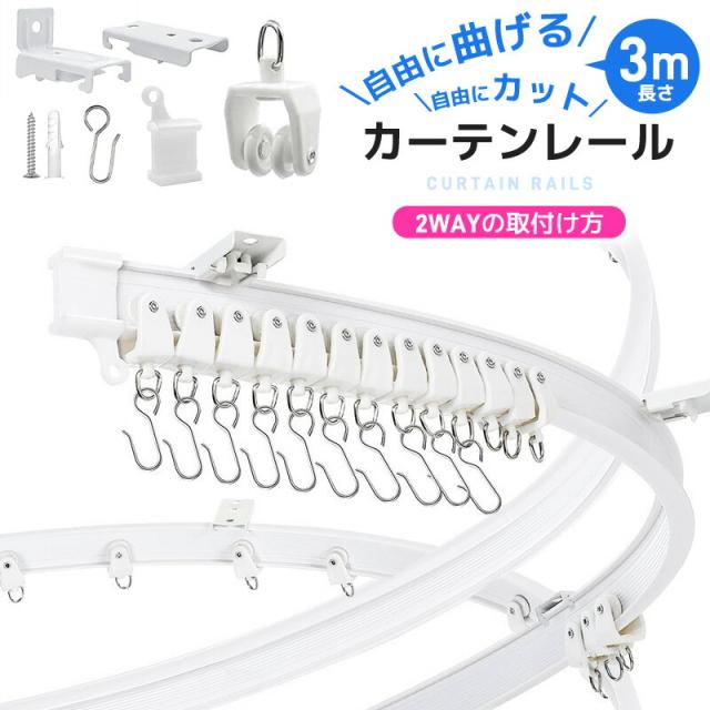 手で曲がるカーテンレール 寝室用 出窓用 レール 切る 300cm 静音タイプ 目隠し 軽量 リビング 小窓 子供部屋 新居 間の仕切り 安定性 簾 DIY 白 設置簡単 北欧 コーナー