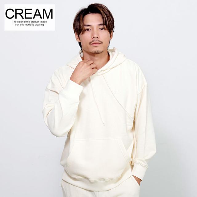 柔らかな裏毛スウェット素材を使用したプルオーバーパーカー。