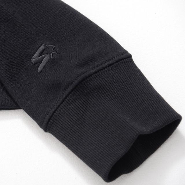 胸と袖に施したボディと同色のブランドロゴ刺繍がさりげないデザインポイント。