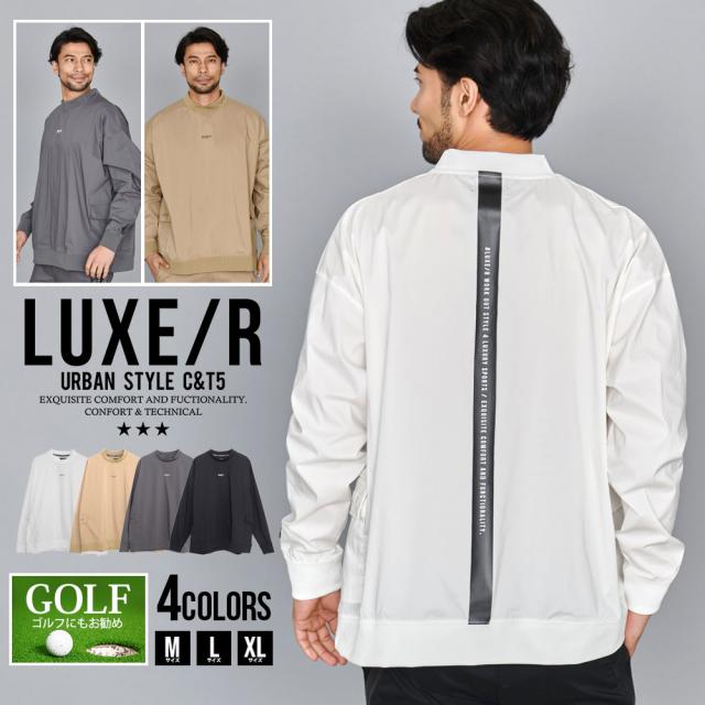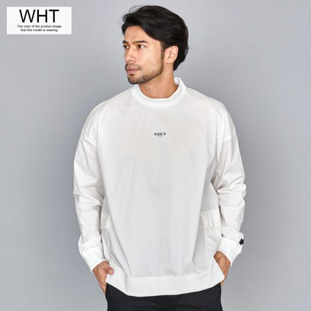 トレーナー メンズ ブランド おしゃれ 長袖 トップス スウェット スエット モックネック ハイネック 布帛 ナイロン ロゴ プリント ストレッチ 伸縮性 ユニセックス ゴルフウェア スポーツ 大人 プルオーバー 白 黒 M L XL LL LUXE R ラグジュ 秋 冬 秋服 冬服 [45853]