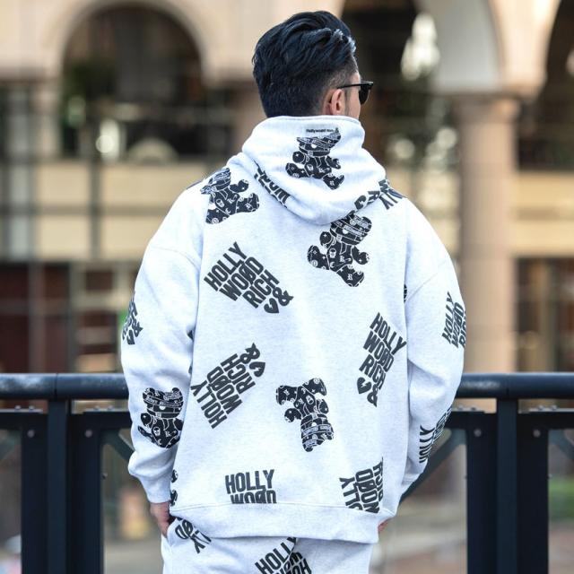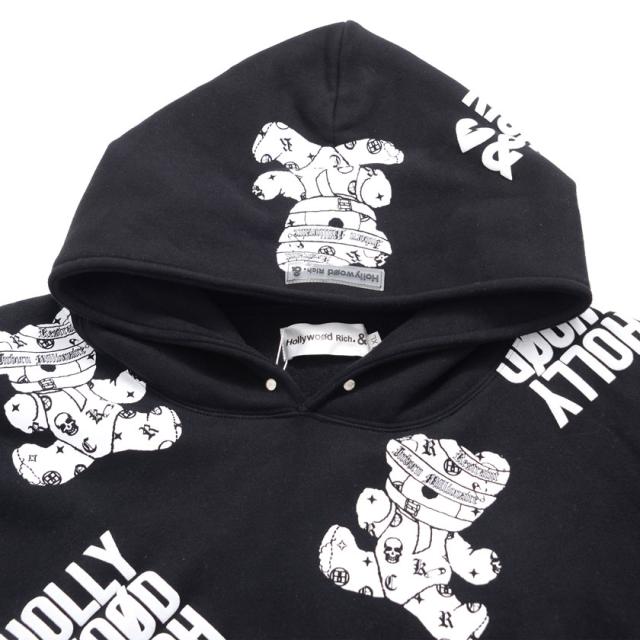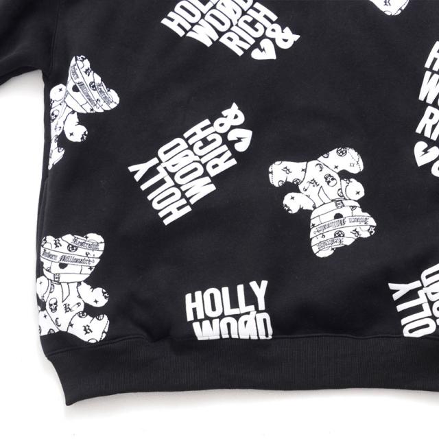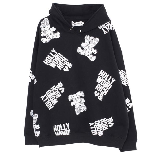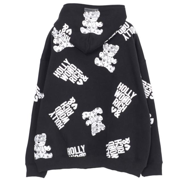SILVER BULLET(シルバーバレット)にHollywood rich.&【ハリウッドリッチドットアンド】裏起毛総柄プルオーバー長袖パーカーが入荷しました。ボディ全体にパンクベアとブランドロゴを総柄プリントしたプルオーバーパーカー。