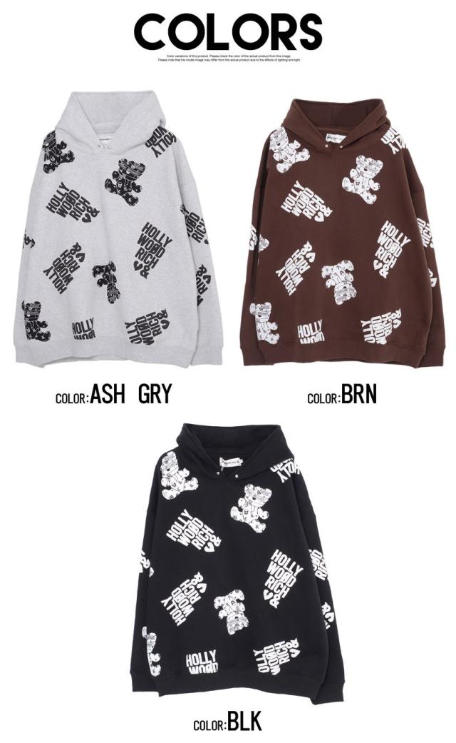 パーカー メンズ 長袖 セットアップ可 ブランド おしゃれ 裏起毛 防寒 暖かい 大きいサイズ プルオーバー スウェット スエット フーディー パンク ベア クマ くま 熊 ロゴ 総柄 プリント ゆったり ビッグシルエット オーバーサイズ ルームウェア 部屋着 ユニセックス レディース アッシュグレー ブラウン ブラック 黒 M L XL Hollywood rich.& ハリウッドリッチドットアンド 大人 アメカジ スポーツ カジュアル ストリート ストリート系 韓国 韓国系 韓国ファッション 下北沢 下北系 古着 古着系 90s 90年代 2000年代 Y2K 服 秋 冬 秋冬 男性 男 父の日 父の日ギフト 父の日プレゼント 20代 30代 40代 ファッション メンズファッション 東京 プレゼント 誕生日 記念日 贈り物 ギフト配送について
