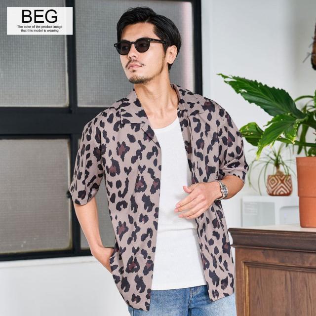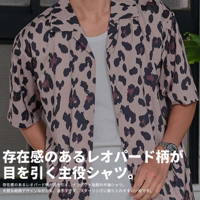 シャツ メンズ ブランド おしゃれ 半袖 半袖シャツ カジュアルシャツ レオパード柄 総柄 大きいサイズ ゆったり ルーズ ブラック ベージュ 黒 M L XL LL 春 夏 春夏 春服 夏服 大人 カジュアル ストリート ストリート系 ストリートファッション アメカジ 原宿系 韓国 韓国系 韓国ファッション 男性 男 父の日 父の日ギフト 父の日プレゼント 20代 30代 40代 メンズファッション 東京 プレゼント 誕生日 記念日 贈り物 ギフト配送について