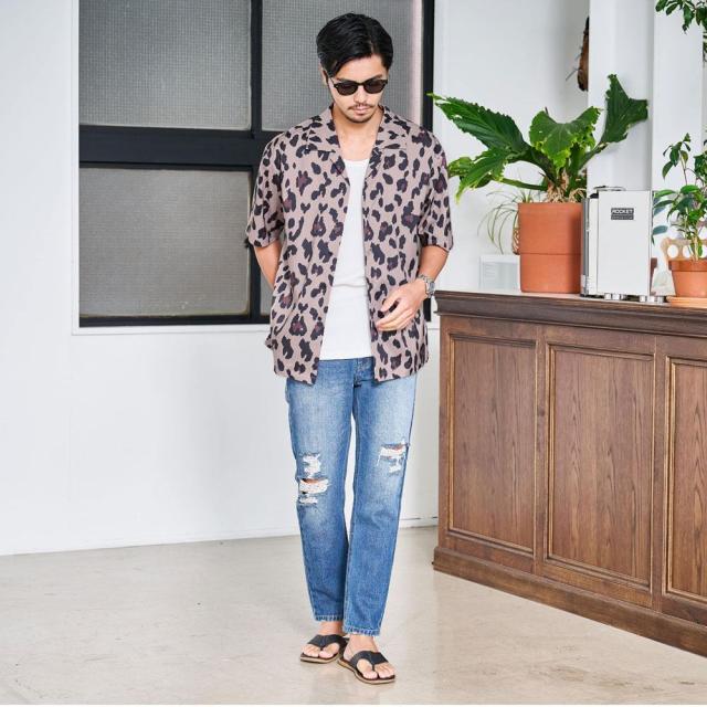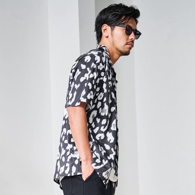 存在感のあるレオパード柄が目を引く、インパクト抜群の半袖シャツ。