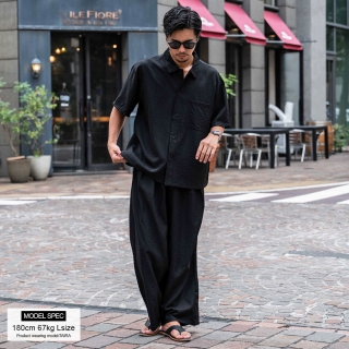 また同素材の布帛Tワイドパンツとのセットアップもオススメ。