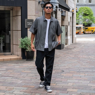 オリジナルのレーヨン素材を使用した、リラックス感のある半袖オーバーシャツ。