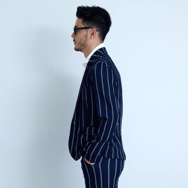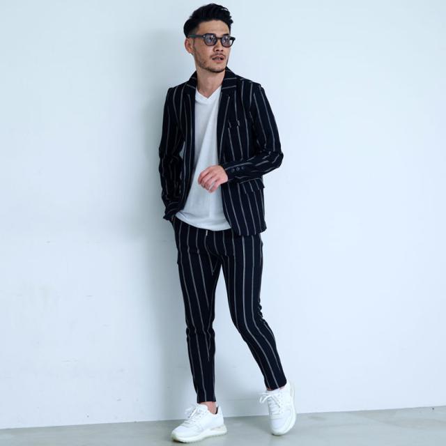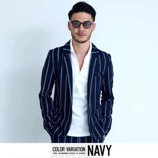 テーラードジャケット メンズ ブランド おしゃれ カジュアルスーツ セットアップ可 アウター ストライプ柄 薄手 細身 スリム ストレッチ テレワーク リモートワーク 在宅勤務 カジュアル きれいめ フォーマル 20代 30代 40代 CavariA 春 夏 即日発送 [CAST22-30]