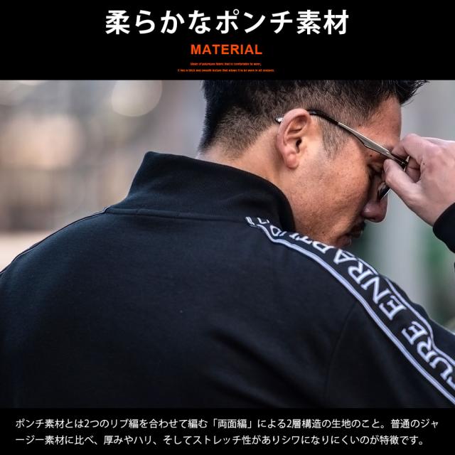 柔らかなポンチ素材を使用したフルジップ長袖トレーナー。