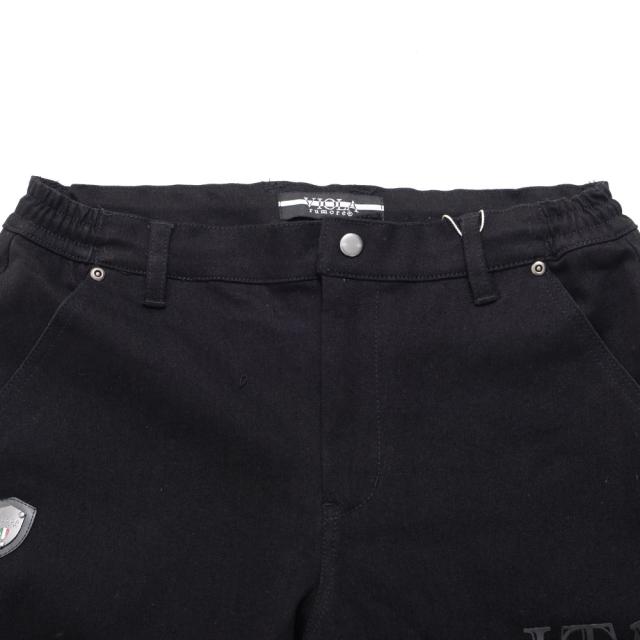 左ももに「ITA」のロゴ、右ポケット下にはオリジナルエンブレムが高級感を演出。