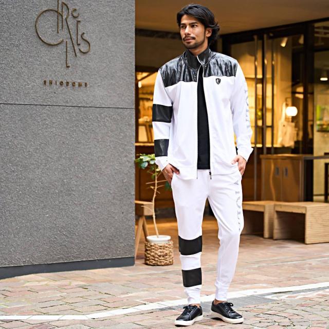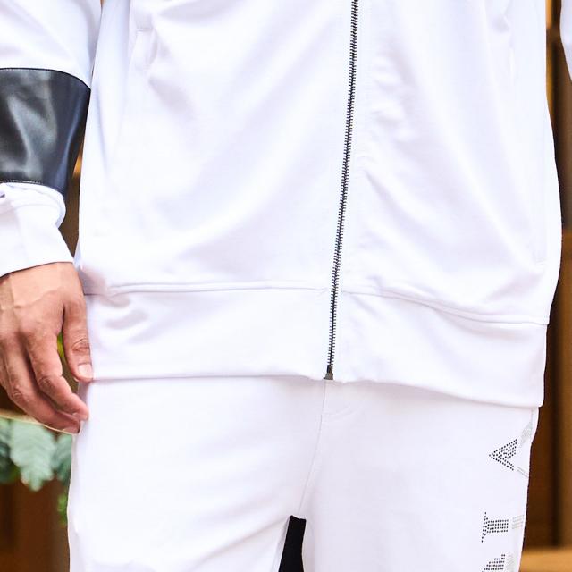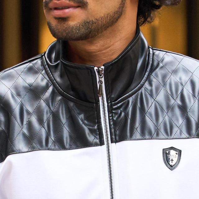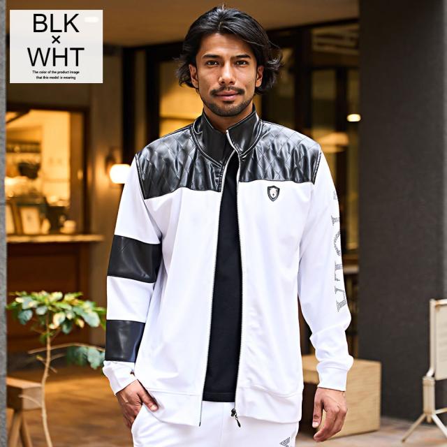 ブルゾン メンズ 上下 セットアップ可 ゴルフ ゴルフウェア ブランド おしゃれ 大きいサイズ 長袖 アウター ジャージ スタンドネック スタンドカラー 立ち襟 ジップアップ キルティング PUレザー 配色 切替 切り替え ラインストーン ロゴ エンブレム 細身 スリム タイト ストレッチ 伸縮性 ルームウェア 部屋着 ユニセックス レディース 男女兼用 ホワイト ブラック 白 黒 M L LL XL VIOLA ヴィオラ 大人 上品 きれいめ スポーツ カジュアル ストリート ストリート系 韓国 韓国系 韓国ファッション 下北沢 下北系 古着 古着系 90s 90年代 2000年代 Y2K 服 秋 冬 秋服 冬服 男性 男 父の日 父の日ギフト 父の日プレゼント 20代 30代 40代 ファッション メンズファッション 東京 プレゼント 誕生日 記念日 贈り物 ギフト配送について