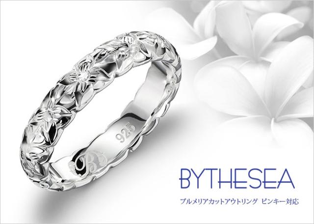 ハワイアンジュエリー リング 刻印 無料 誕生石入れ可 1号〜15号 幅約3.5mm オールプルメリア シルバー925 ギフト対応可 指輪 ピンキーリング 小さいサイズ BY THE SEA バイザシー 彼女 妻 女性 レディース 誕生日 プレゼント クリスマス 【品番:SR501】