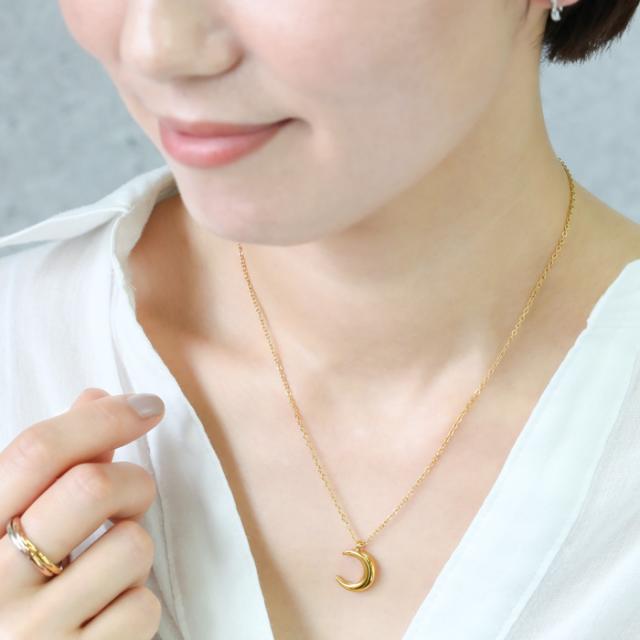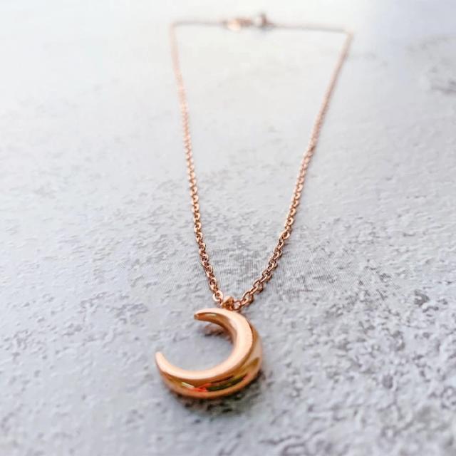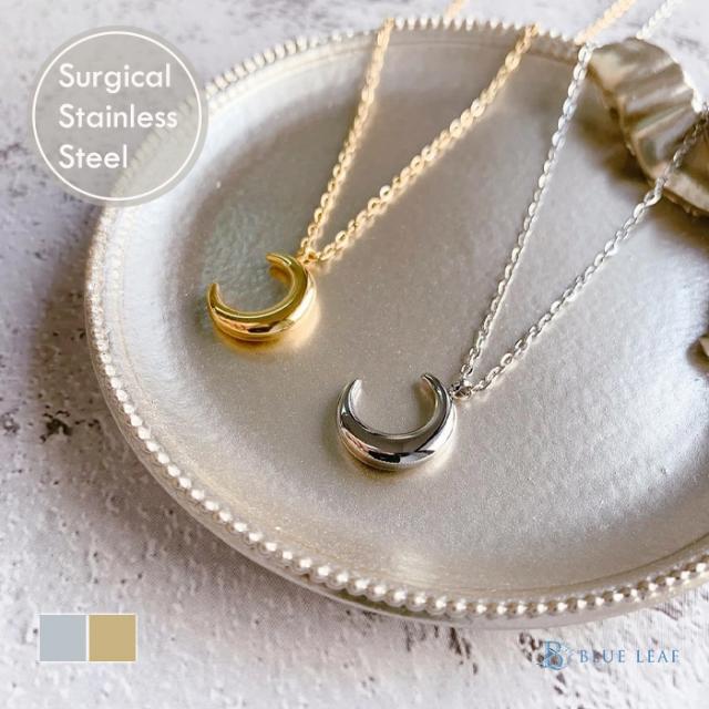 ステンレス ネックレス ムーン 月 三日月 喜平チェーン 金属アレルギー対応 k18コーティング ペンダントトップ トップ ゴールド シルバー ピンクゴールド サージカルステンレス