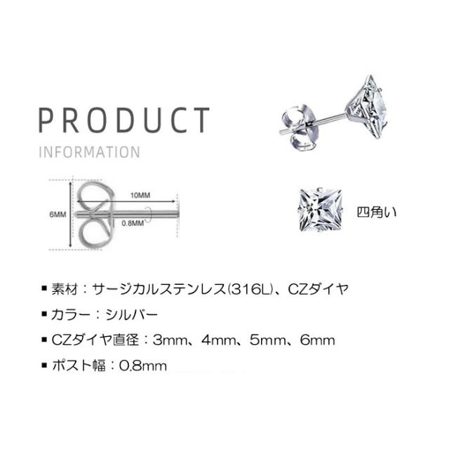 | サイズ | CZダイヤ:3〜6mm,ポスト長さ:10mm、太さ:0.8mm |