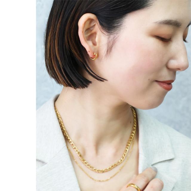 コロンとした丸みとぷっくりとした曲線美が美しい三日月型のピアスです。 耳を包み込むようにフィットし、正面から見ると優しくふんわりと雫の様に煌き、表情をぱっと華やかにしてくれます。 普段使いもオケージョン使用もできる、飽きのこないデザインです◎ |