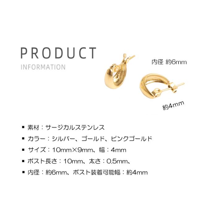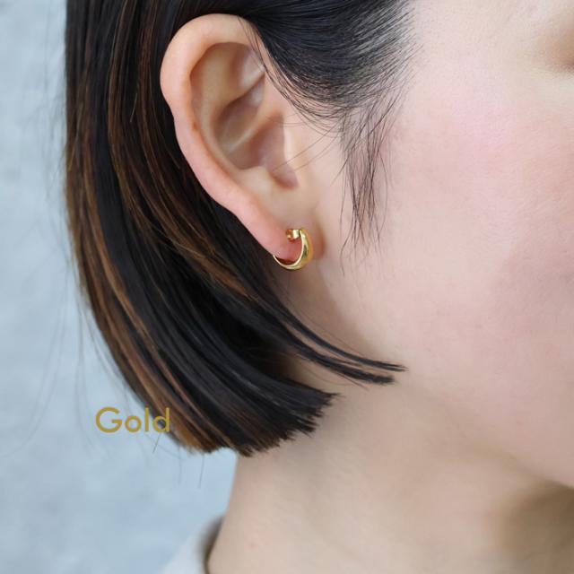 ムーンピアス 月型甲丸ピアス ピアス サージカルステンレス 18金コーティング 月甲 小さめピアス フープ キャッチレス フープピアス ニッケルフリー