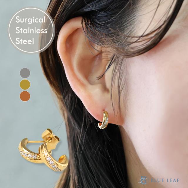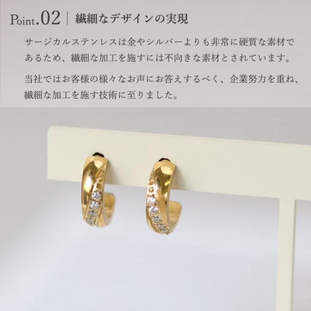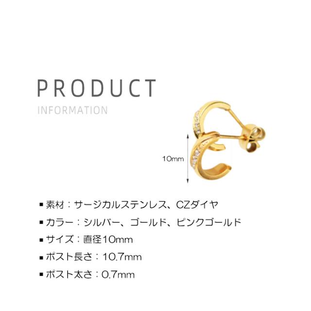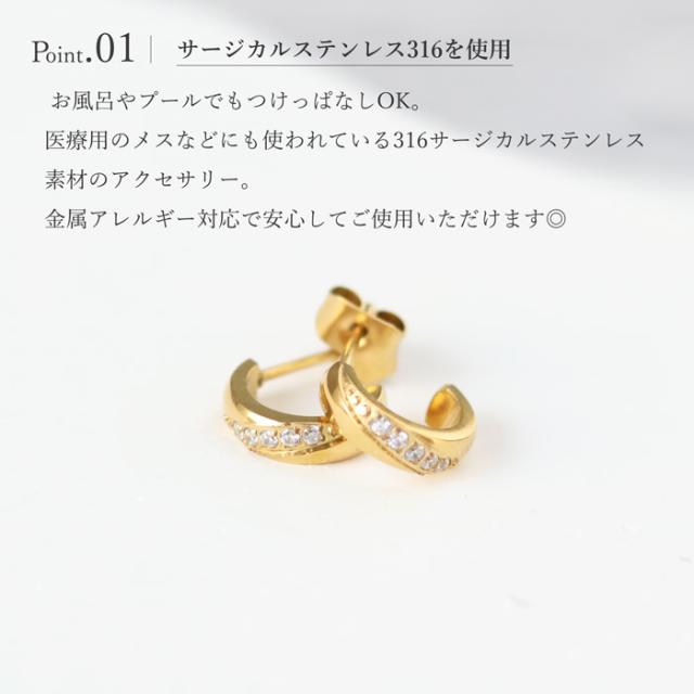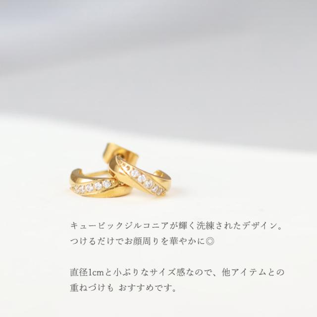 ピアス フープ 小ぶり 小さめ CZダイヤ キュービックジルコニア サージカルステンレス ステンレス 18金コーティング 18K ゴールド つけっぱなし