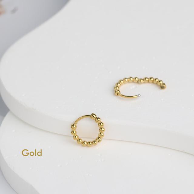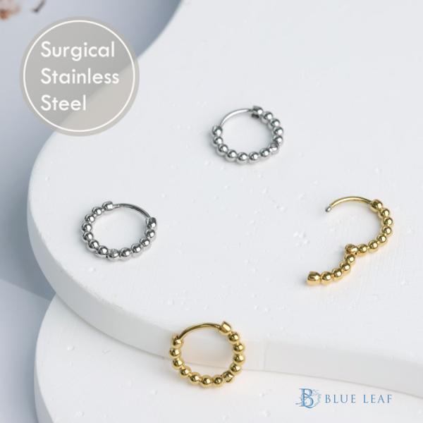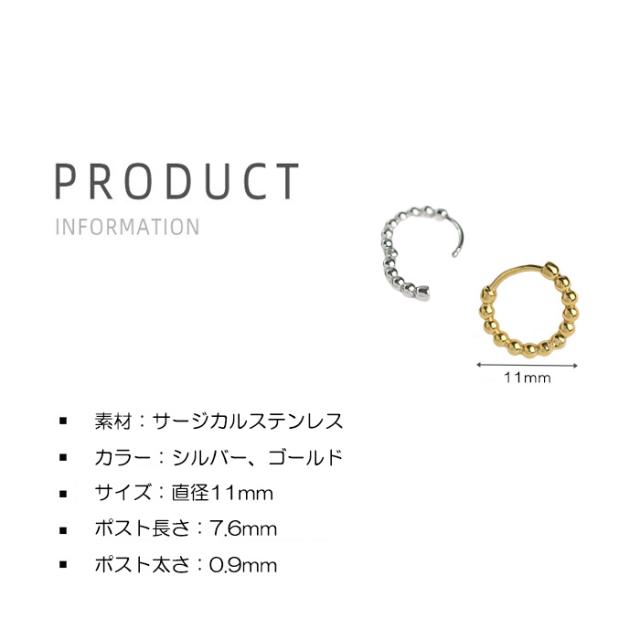 ピアス ボール フープピアス 中折れ 小ぶり キャッチレス k18コーティング ステンレス 両耳 ペア ひっかからない 中折れ式 シルバー ゴールド
