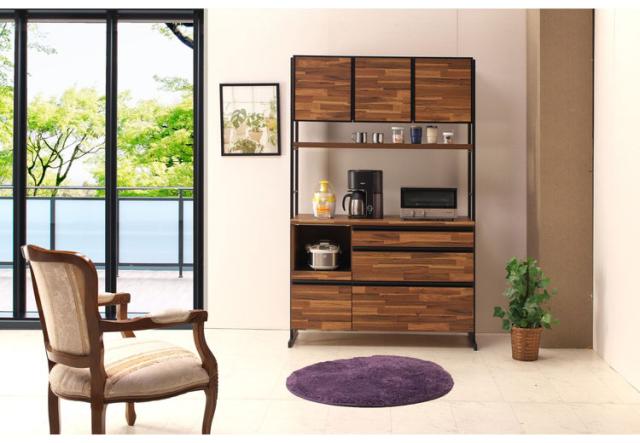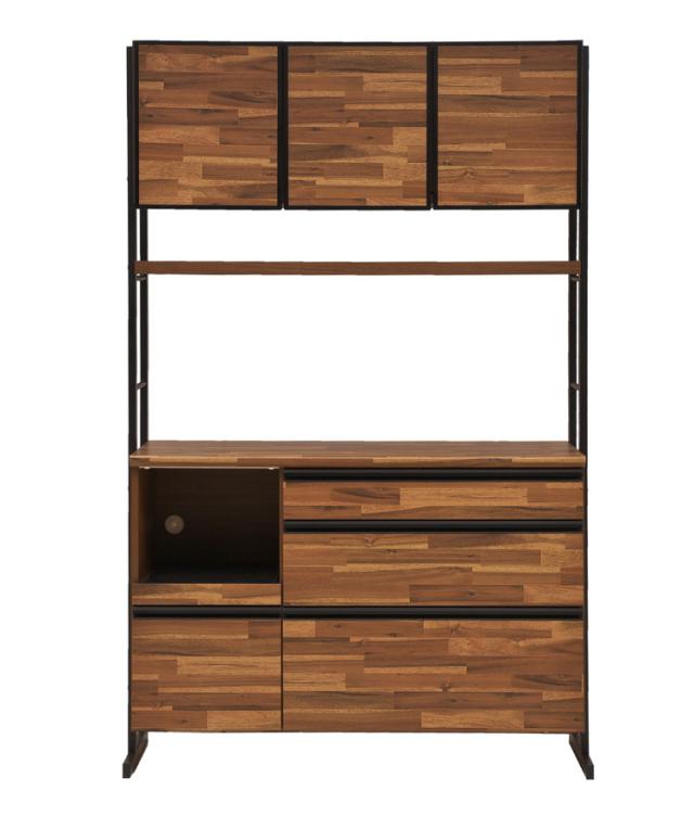 食器棚 キッチンボード 幅124 奥行48 高さ196 アカシア 木目 開き戸 国産 高さ調節 おしゃれ アイアン モイス加工 レンジ台 レンジボード 大容量 キッチン 収納(代引不可)【送料無料】