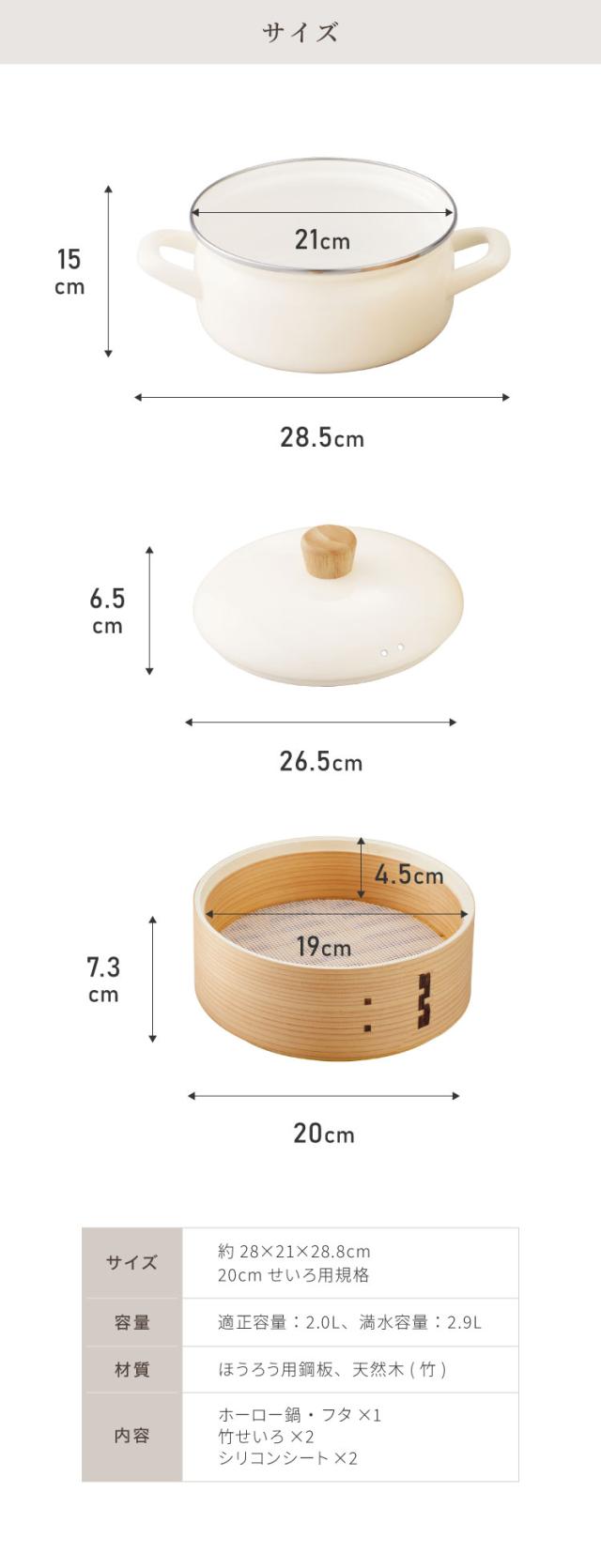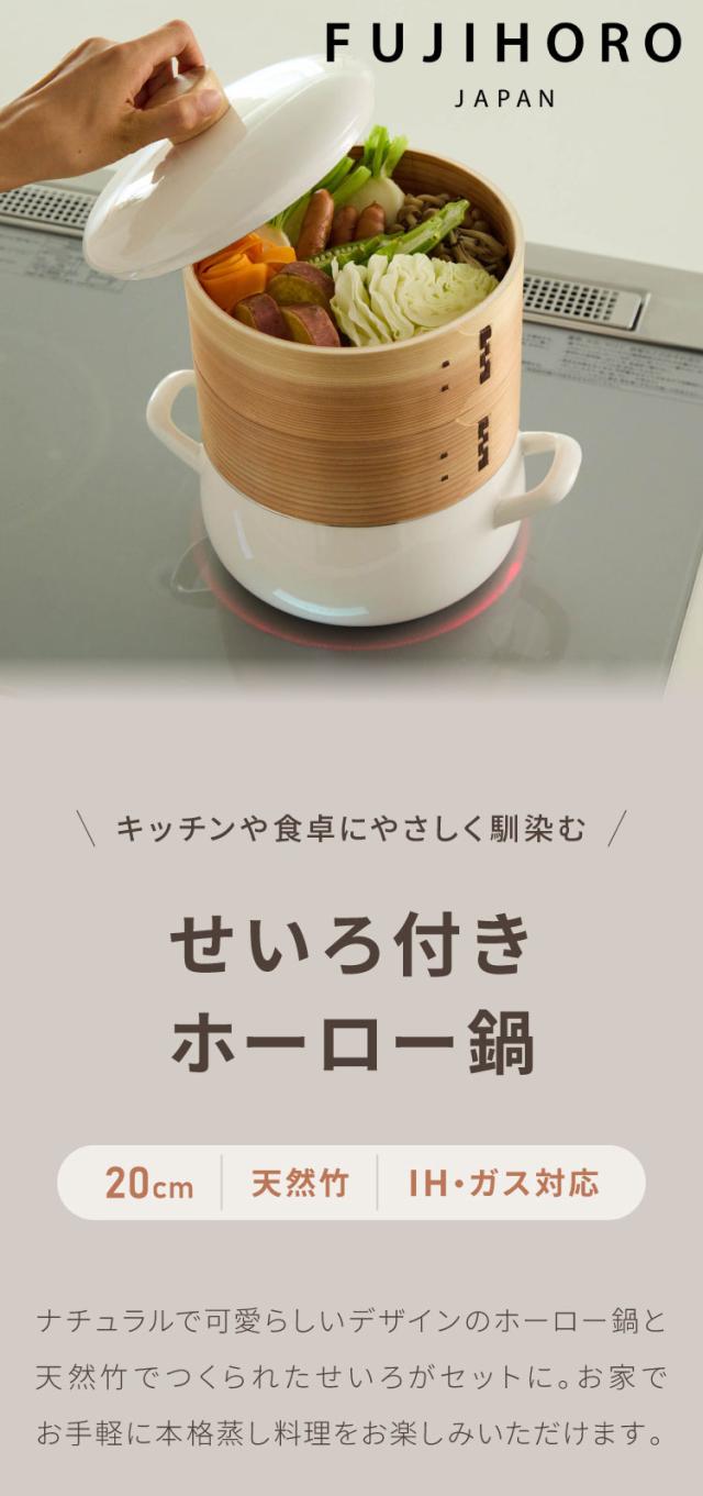 富士ホーロー せいろ付きホーロー鍋 2段 セット 20cm 簡単蒸し料理 蒸し器 蒸し鍋 2段 竹 せいろ セイロ 蒸篭 蒸し野菜 せいろ蒸し 蒸しかご 琺瑯 ほうろう FUJIHORO 両手鍋 鍋 ホーロー【送料無料】