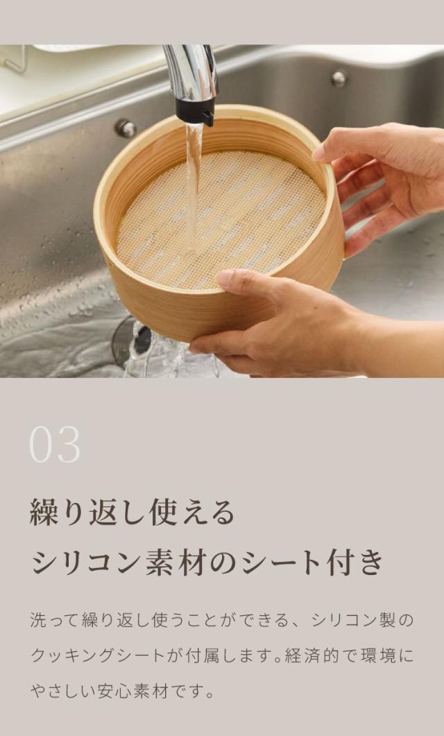 ※せいろは天然素材のため、使用回数や使用状況にかかわらず、隙間、ヒビ、割れ、ささくれなどが生じることがあります。