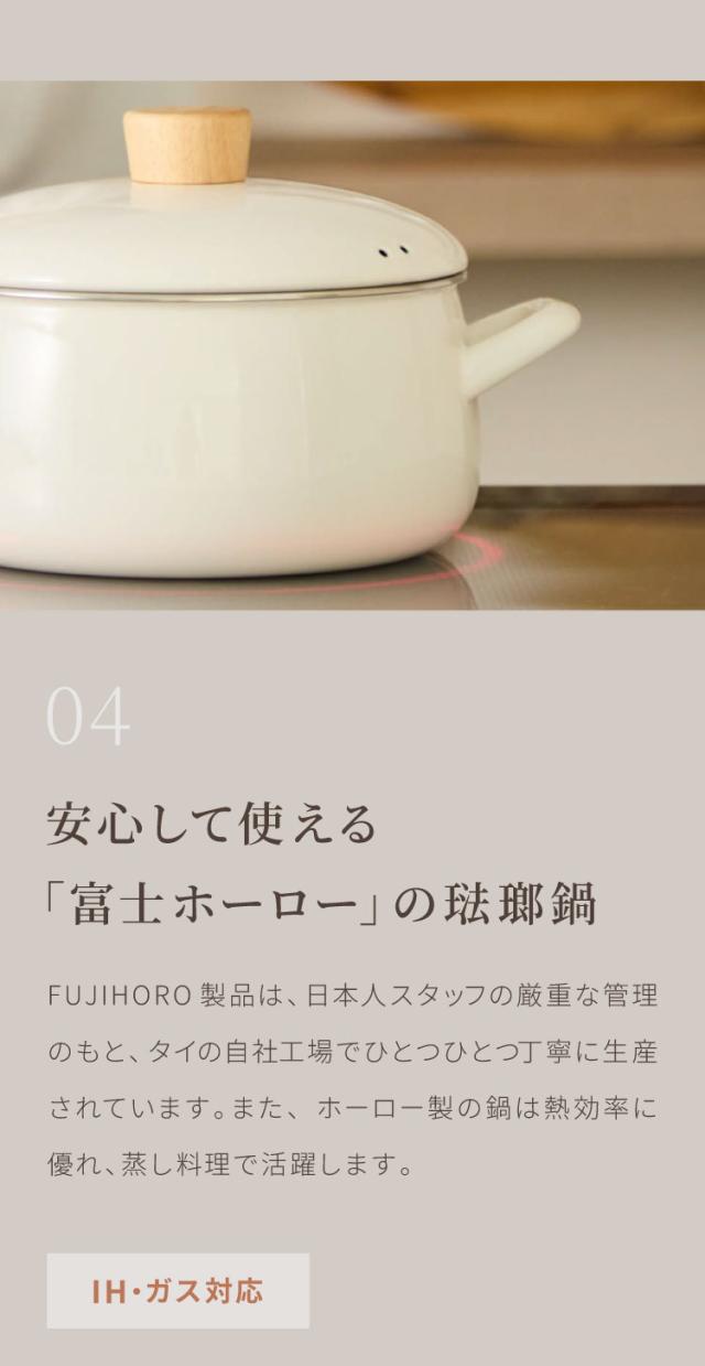 ※ホーロー製品は手作業で釉薬をかけておりますので、多少の個体差がございます。鍋本体や蓋に黒点や塗りムラが見られる場合がありますが、製造工程上避けられないもので、安心してご使用頂けます。このような理由での交換・返品はお受けできかねますのでご了承ください。