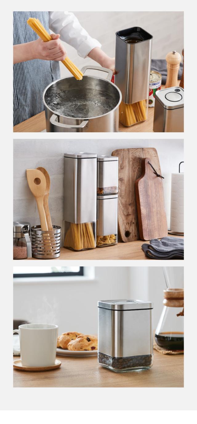 ステンレスとガラスで清潔感のあるデザインなので、一式揃えて並べるとどこかプロフェッショナルなキッチンに。