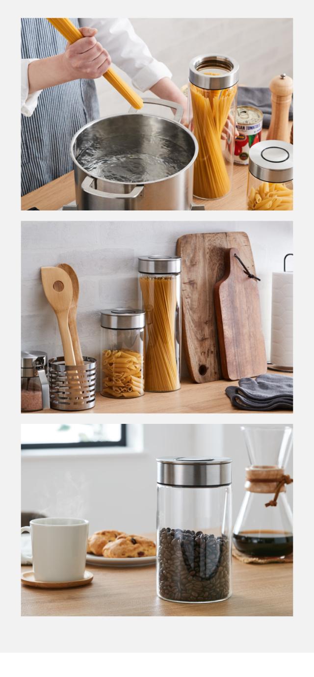 ステンレスとガラスで清潔感のあるデザインなので、一式揃えて並べるとどこかプロフェッショナルなキッチンに。