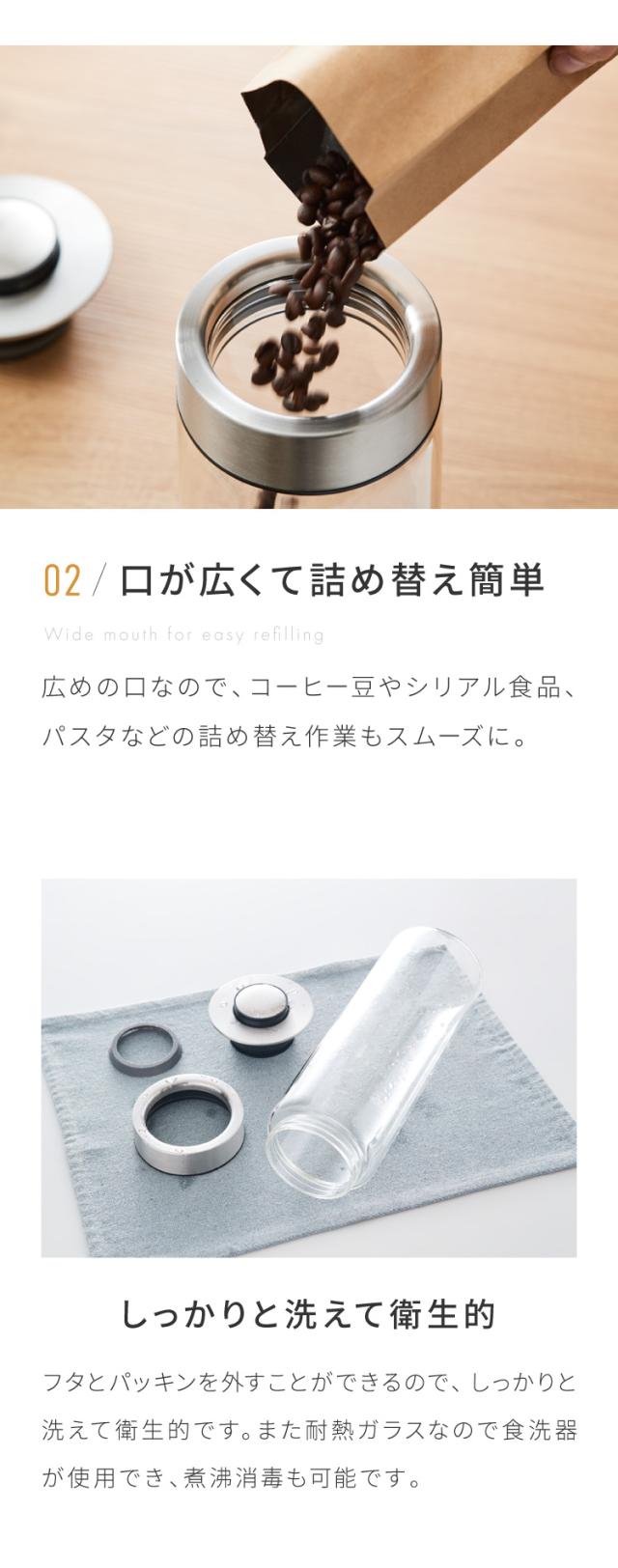 こちらの保存瓶は、ワンタッチで蓋を開ける事が出来ます。力を入れずに開けられるのは嬉しいポイント。
