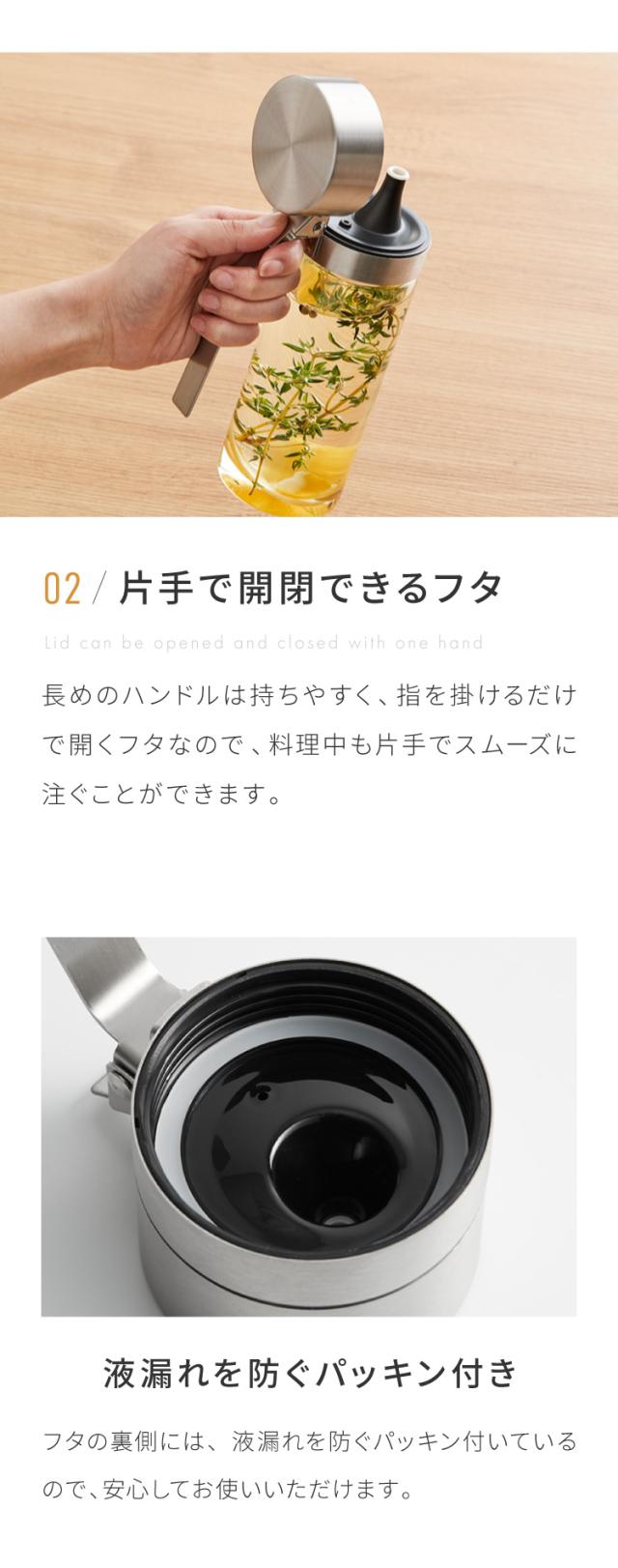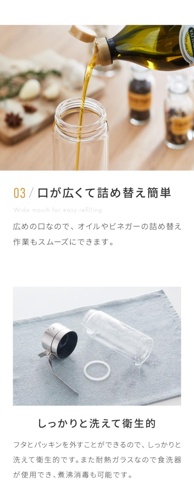 調味料ボトル、オイルボトル、ヴィネガーボトル、ビネガーボトル、液だれしにくい、ボトル、ガラス製、調味料入れ、調味料ポット、オイル、油、酢、ビネガー、ドレッシング、酸化防止、ワンタッチ、開閉、雑貨、ヴィンテージ調、おしゃれ