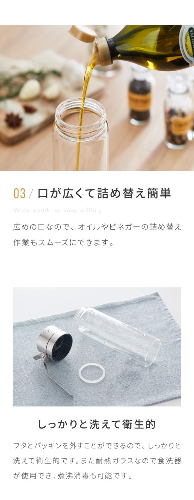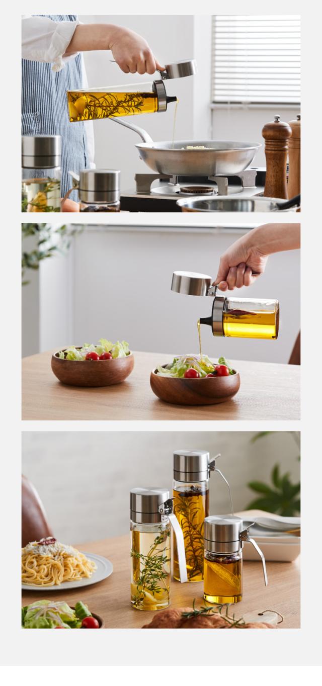 調味料ボトル、オイルボトル、ヴィネガーボトル、ビネガーボトル、液だれしにくい、ボトル、ガラス製、調味料入れ、調味料ポット、オイル、油、酢、ビネガー、ドレッシング、酸化防止、ワンタッチ、開閉、雑貨、ヴィンテージ調、おしゃれ