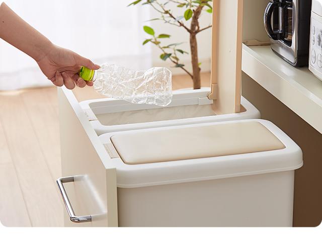2つの大容量ごみ箱付きのレンジ台です。