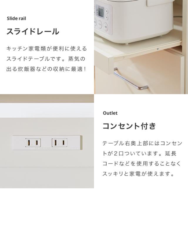 日本製 キッチンカウンター 幅60cm 完成品 2色 幅60cm かわいい 北欧 おしゃれ ワイド コンセント付 キャスター付き(代引不可)【送料無料】